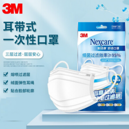 3M口罩 耐适康7660+ 一次性成人口罩透气三层过滤防护防尘防风防飞沫 白色大号 7只装